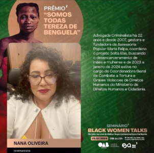 Nossa cofundadora, Nana Oliveira foi uma das mulheres homenageadas pelo Prêmio “Somos todas Tereza de Benguela” pela OAB de Minas Gerais. Nossa instituição celebrou este reconhecimento público da trajetória de Nana pautada na luta pelas liberdades.