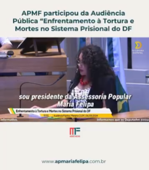 Nossa cofundadora Nana Oliveira participou da audiência pública “Enfrentamento à Tortura e Mortes no Sistema Prisional do Distrito Federal” presidida pelo Deputado Distrital Fábio Felix.